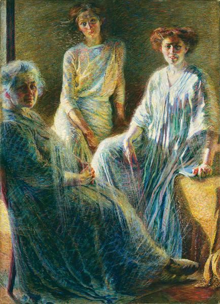 Segantini, dopo il primo confronto con Millet, si allinea progressivamente con i grandi europei post-impressionisti vivendo pienamente la rivoluzione moderna del Divisionismo, che in mostra sarà evocata anche dalle opere di Pellizza da Volpedo, Previati e Michetti.