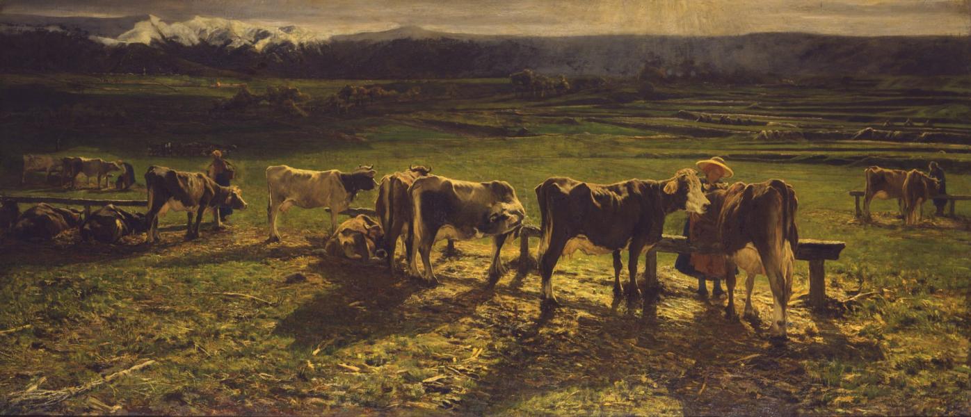 Se il veneziano Hayez fa di Milano, vera capitale culturale dell’Ottocento italiano, il luogo di elezione della sua rivoluzionaria militanza artistica, Segantini sceglie, invece, l’anfiteatro eterno, intatto, epico delle Alpi per le sue innovative rappresentazioni volte alla ricerca della luce attraverso il divisionismo dei colori che gli permette di costruire la sua personalissima trama della modernità.